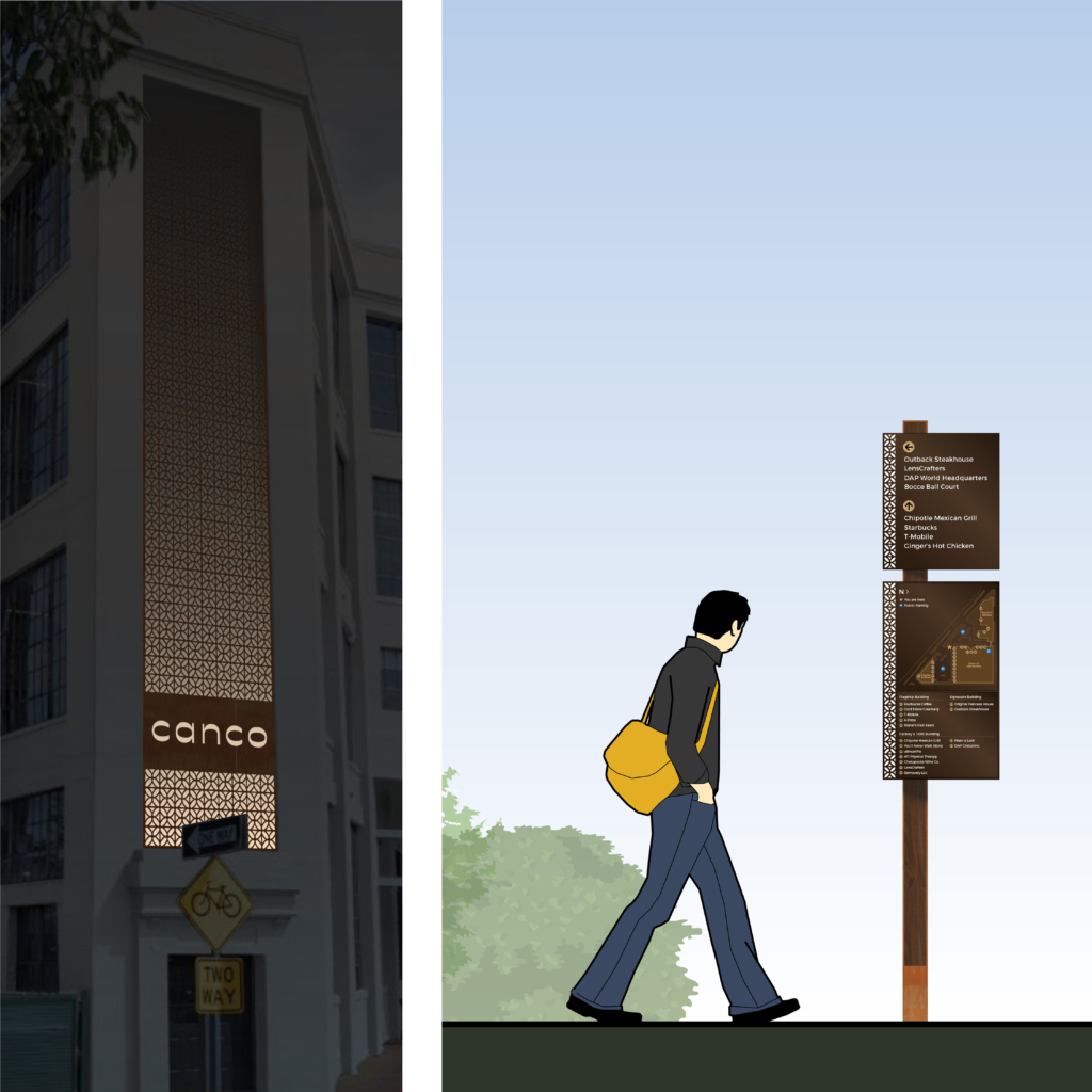We are proud to work alongside Floura Teeter Landscape Architects to help re-envision the site. Our work at the Baltimore CANCO campus includes wayfinding, re-branding, landscaping integration, and environmental graphics. These tools will welcome visitors, guide tenants, and reinforce the site’s identity as both a celebrated historic anchor and a forward-looking hub.